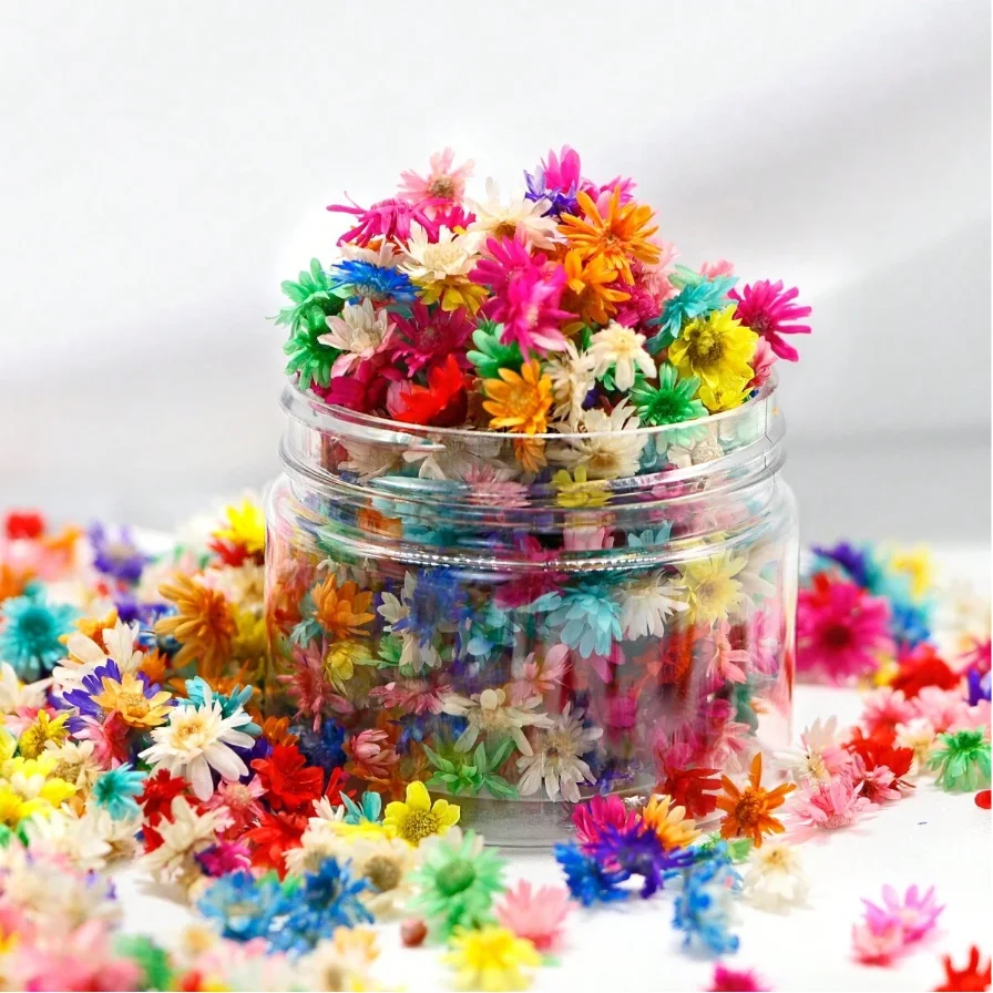 About 120PCS Artificial Flower Heads Handmade Candle DIY Dyed Small Daisy Resin Jewelry Fill Art Craft Home Decor Photo Prop