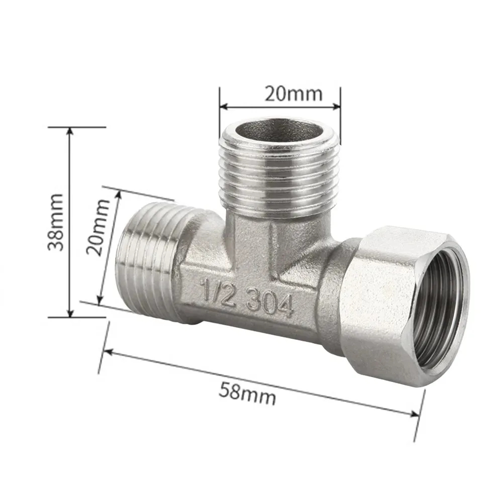 Stainless Steel T Adapter G1/ 2'' T-Valve Diverter Valve Three Way Device Hole For Bath Bidet Sprayer Shower