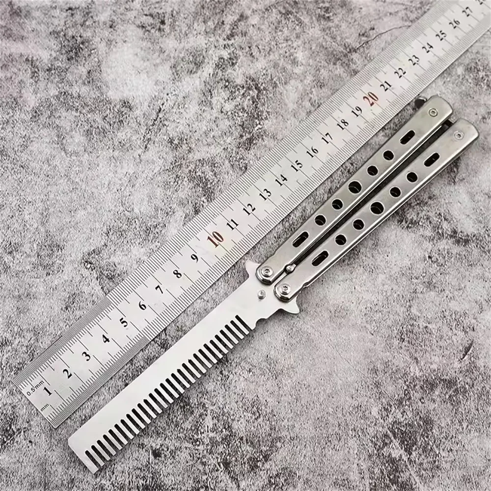Foldable Comb Stainless Steel Practice Training Butterfly Knife Comb Beard Moustache Brushe Salon Hairdressing Styling Tool