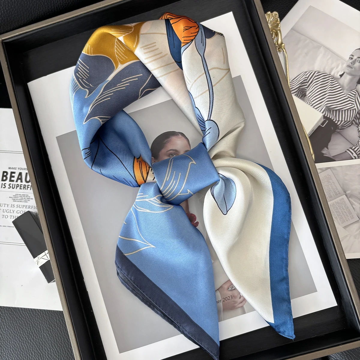 Luxury Silk Feeling Square Scarf Women 2023 Print Satin Neckerchief Spring Hair Band Foulard Bandana Echarpe Tie Shawl Wraps