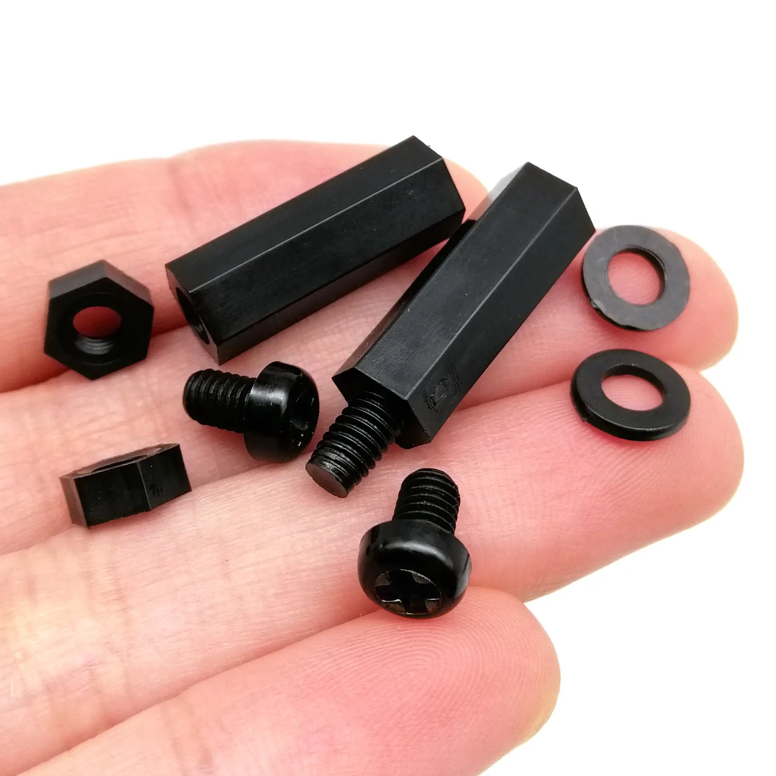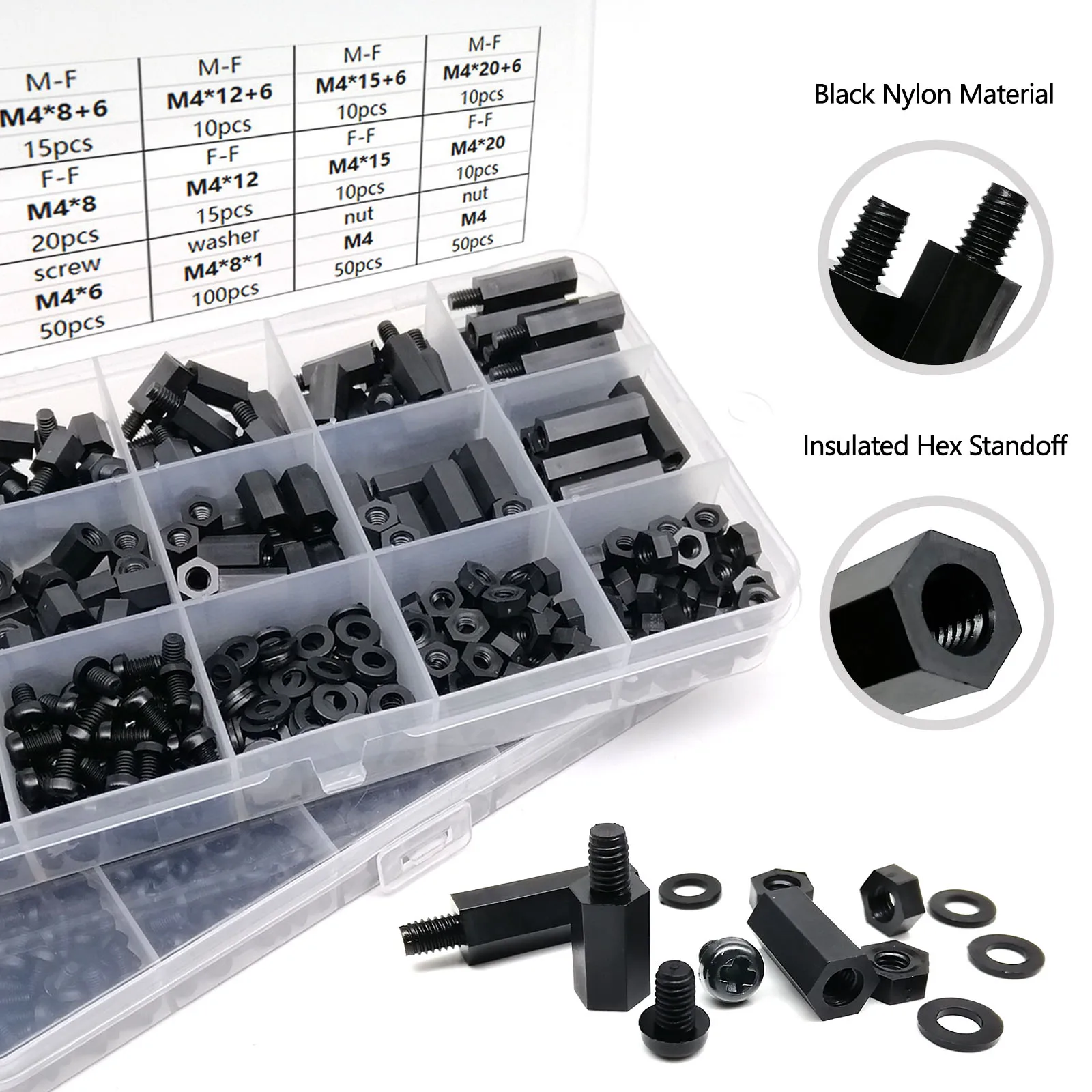 445/1300pcs M2 M2.5 M3 M4 Black Plastic Nylon Insulated Hex Standoff Hexagon Pillar Spacer Column Screw Nut Assortment Kit Set