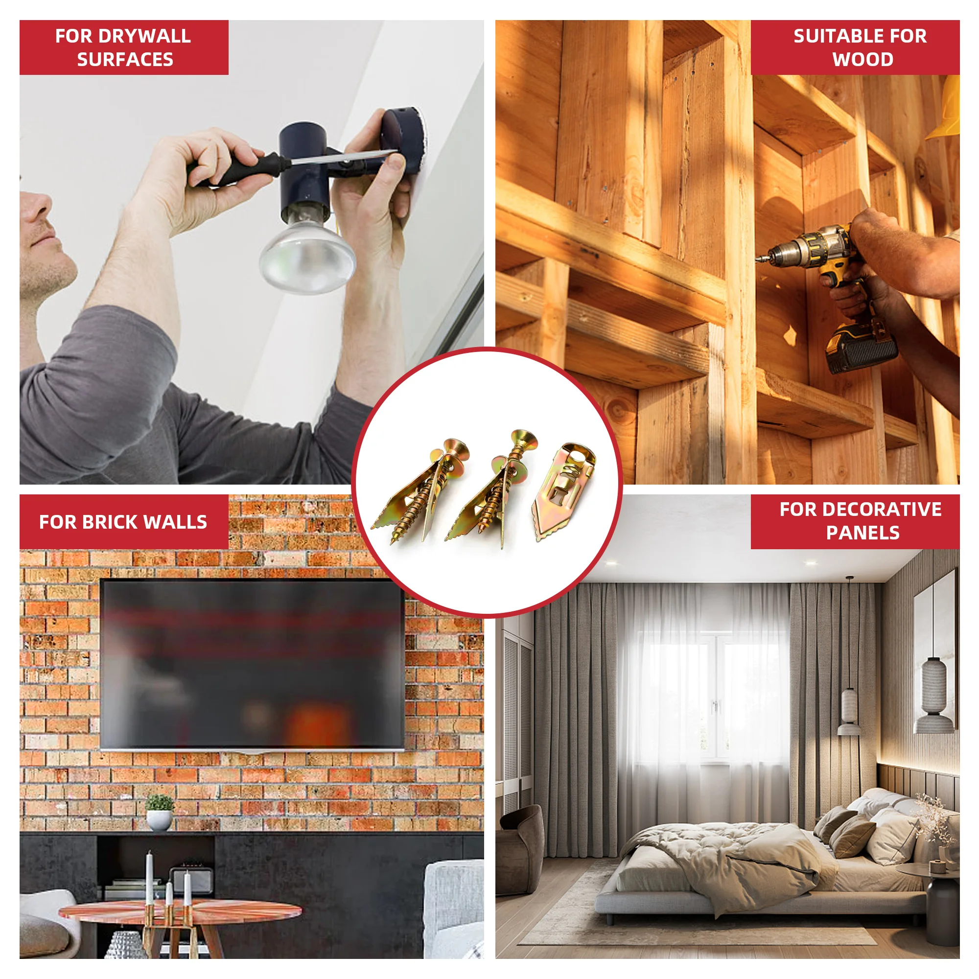 AIMUNOK Bulk 25/50/100 Sets Available! No-Drill Fast Install 84pcs Knock-In Expansion Screws for All-House Installations