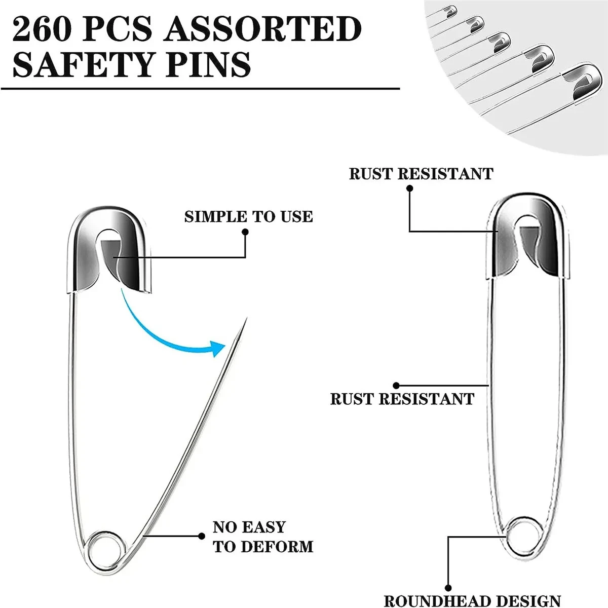 260Pcs Large & Small Assorted Safety Pins Pack Durable Multipurpose Tools for Garment Mending Sewing Projects & Handmade Crafts
