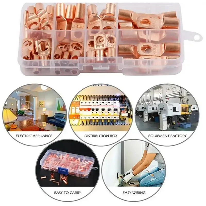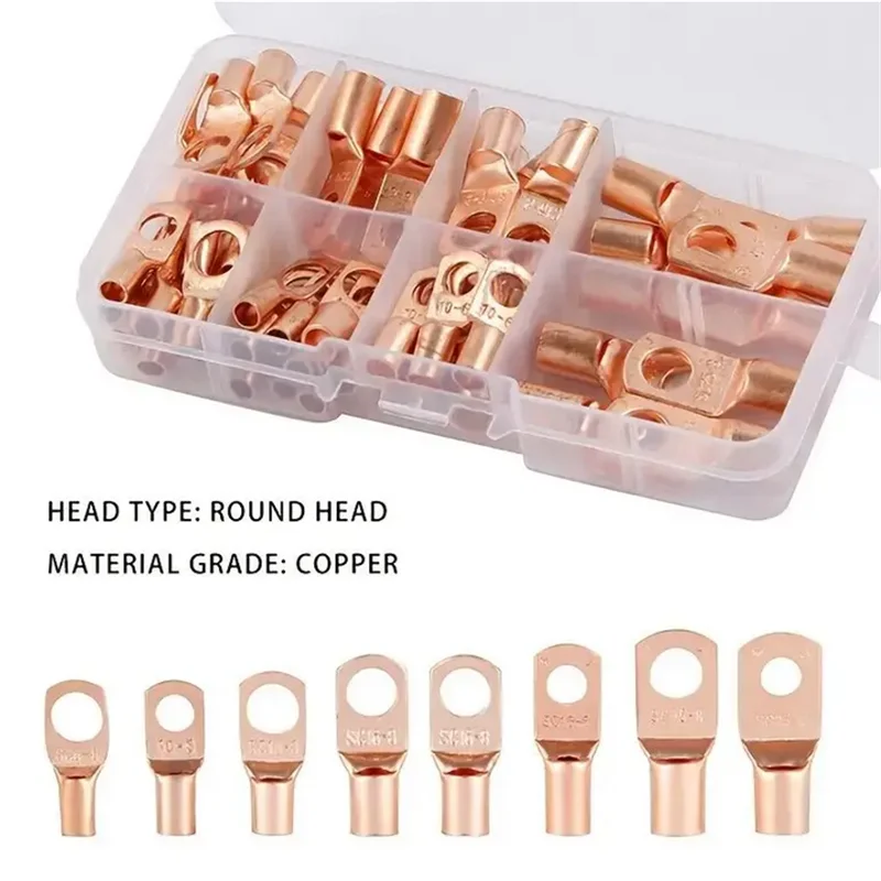 60pcs Wire Lug Connector Ring SC6-25 Copper Connectors Bare Cable Electric Crimp Terminal Connector Kit