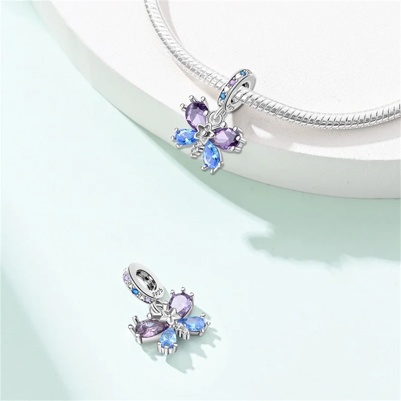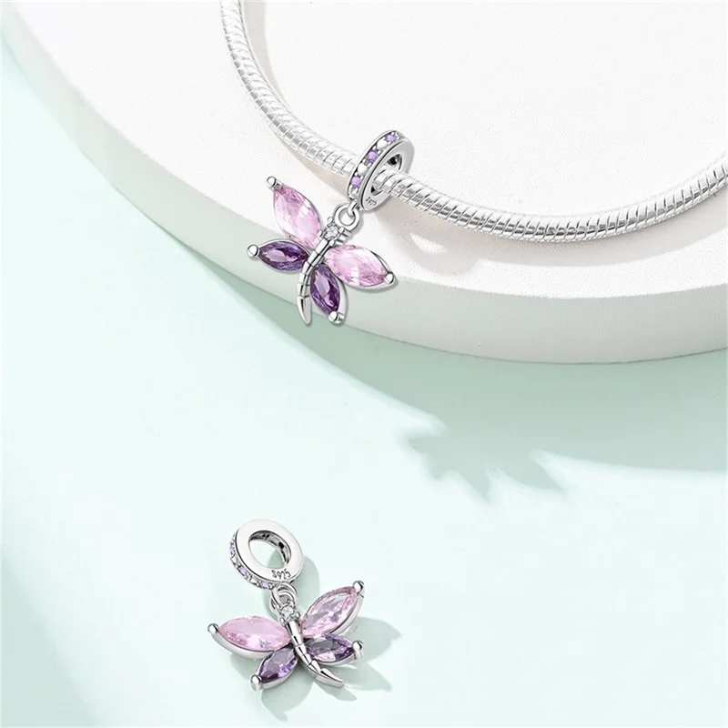 925 Silver Plating Colorful Butterfly Insect Animal Charms Beads Sparkling Zircon Fit Qikaola 925 Original Bracelets DIY Jewelry