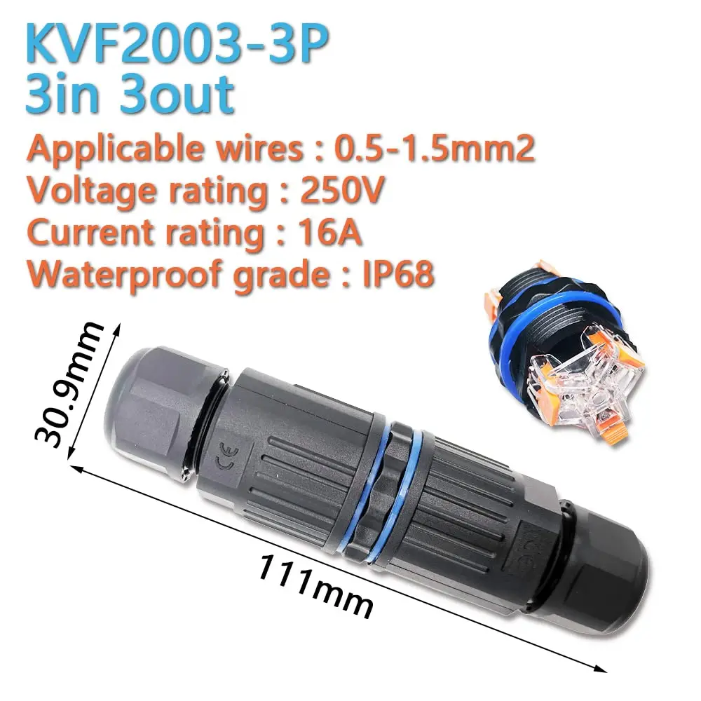 IP68 Waterproof Cable Connector KVSF-15 2 in 2 Out 2Pin 3Pin 4Pin 5Pin Electrical Terminal Adapter Wire Connector LED Light