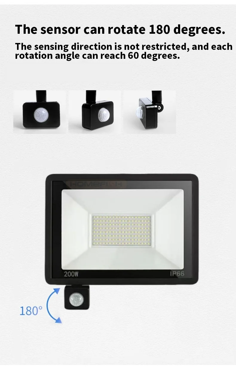 LED PIR Motion Sensor Floodlight Outdoor Wall Light White Light 100W 50W 30W 20W 10W IP66 Waterproof LED Spotlight For Garden