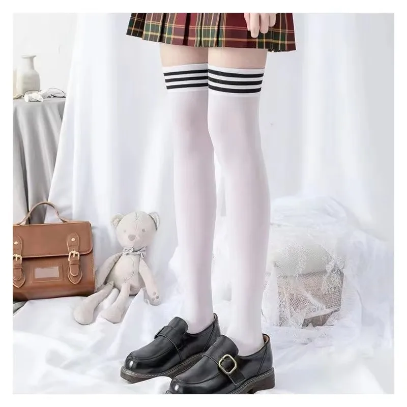 Stockings Thigh High Solid Color Knee-High Socks Lolita Slimming Black White Socks