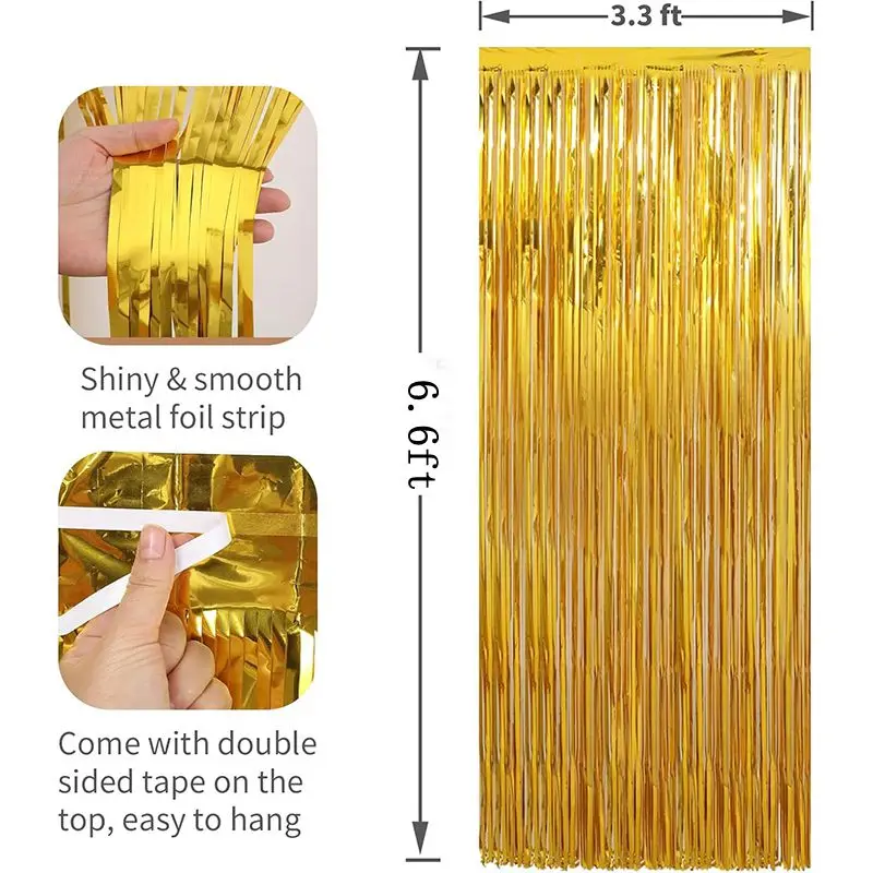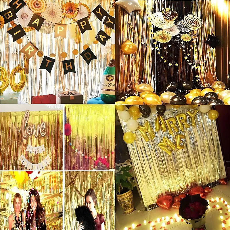 2Meters Party Backdrop Curtains Glitter Gold Tinsel Fringe Foil Curtain Birthday Wedding Decoration Anniversary Decortion