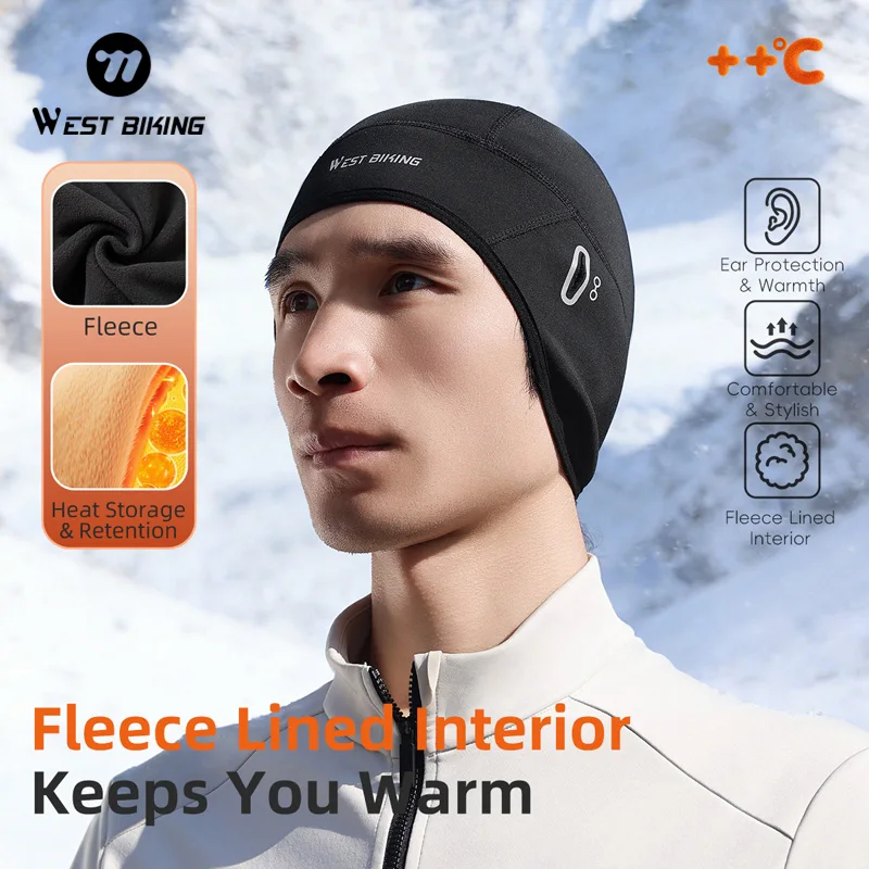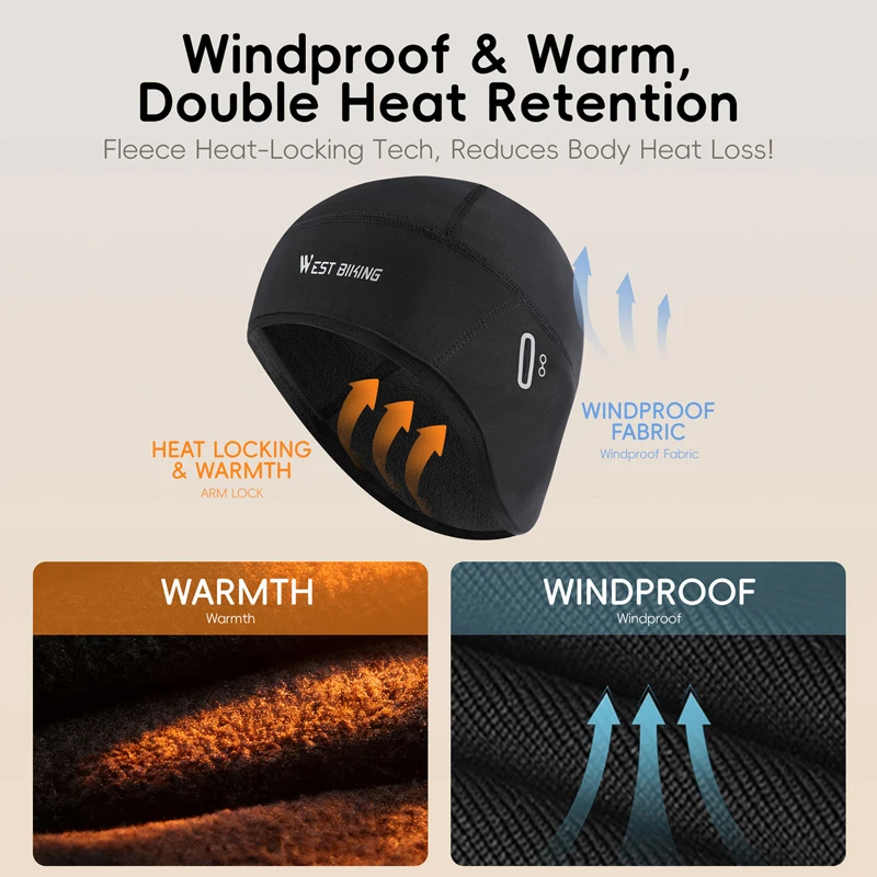 WEST BIKING Winter Fleece Cycling Cap Windproof Thermal Skull Cap Helmet Liner Running Skiing Motocycle Riding Men MTB Bike Hat