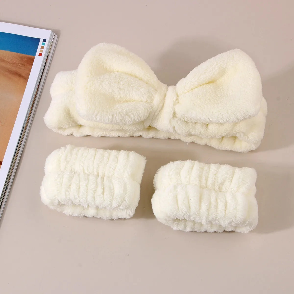 3pcs Skin Friendly Soft Spa Ultra-fine Fiber Makeup Towel Headband Face Washing Wristband Belt Fitting Absorbent Wristband