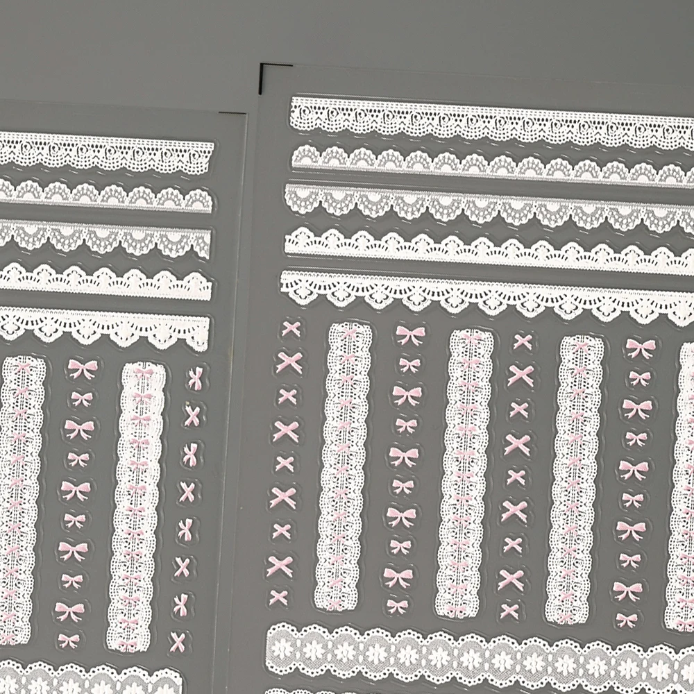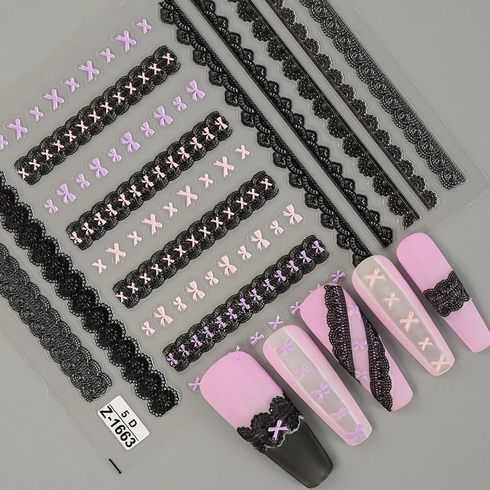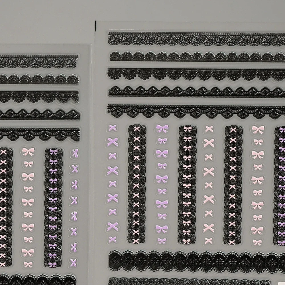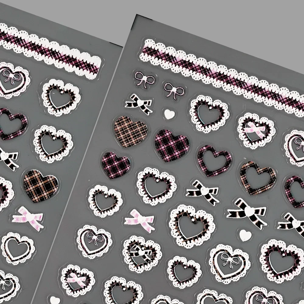 Sweet Pink Bowknot Black Lace Heart Nail Stickers 3D Self Adhesive Nail Art Stickers Manicure Decorations Decals