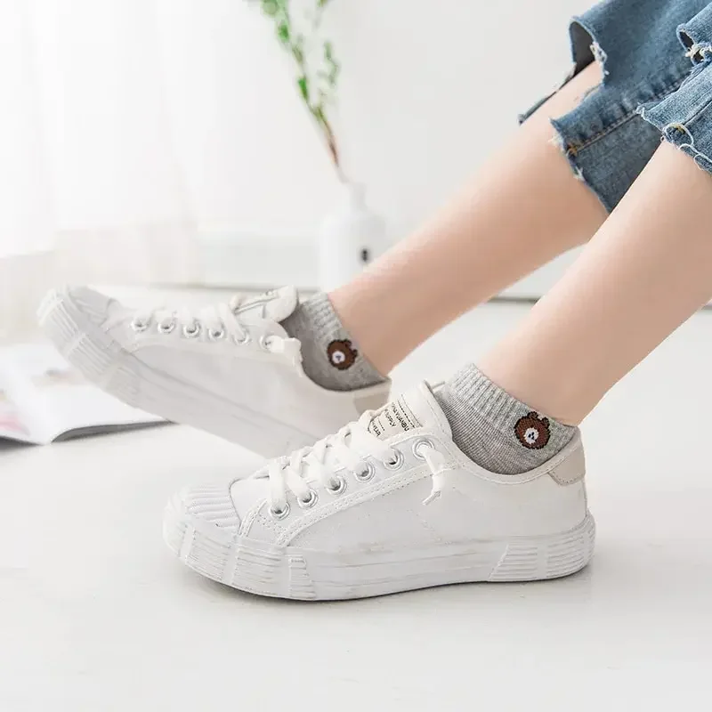 10 Pairs Women Low Tube Socks Set Cute Bear Pattern Fashion Breathable For Female Casual Style Comfortable Socks