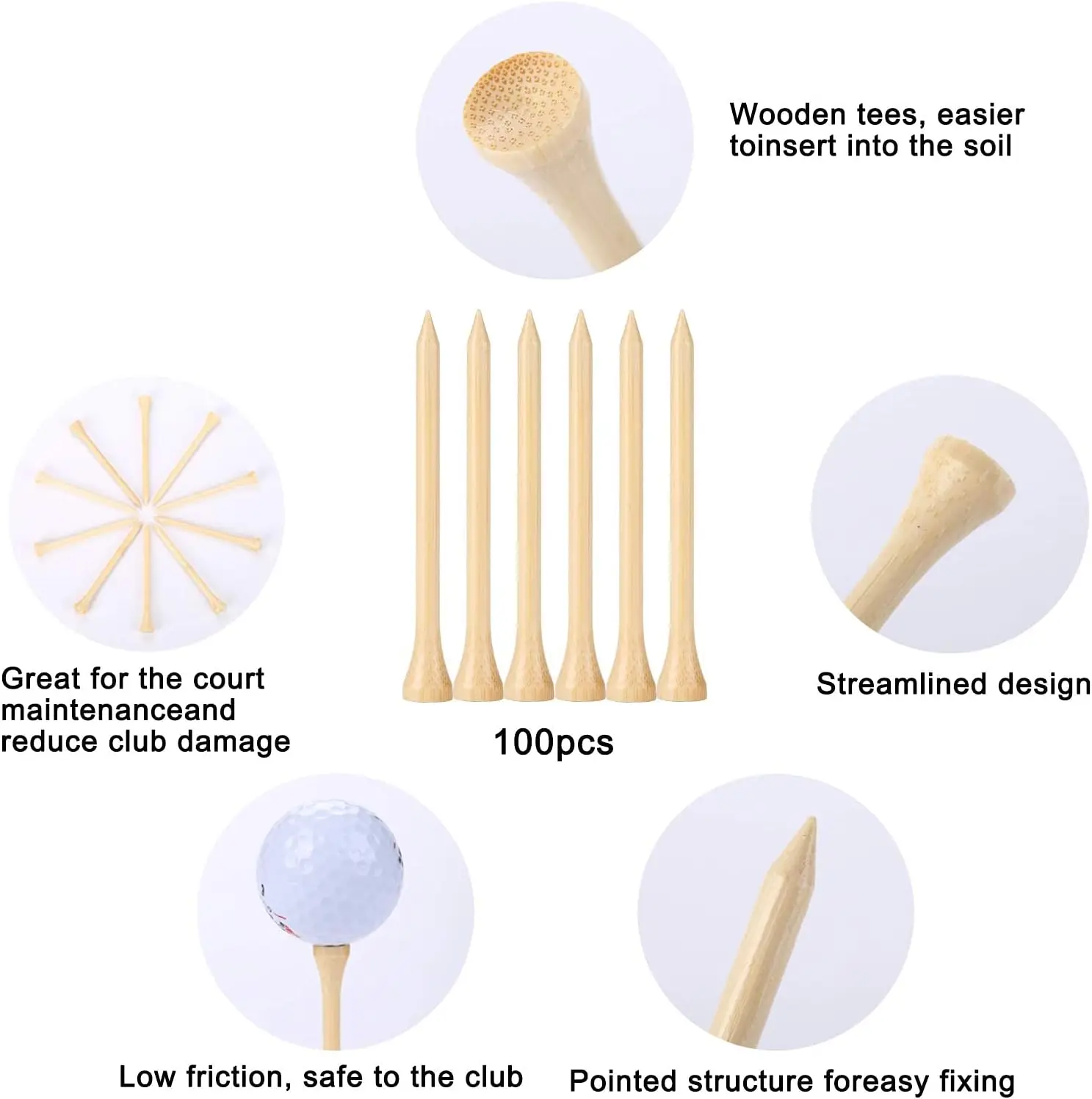 Golf Tees Durable Bamboo Tees 50Pcs/100Pcs 100Pcs 3-1/4'' Friendly Biodegradable Material Reduce Friction Side Spin More Stable