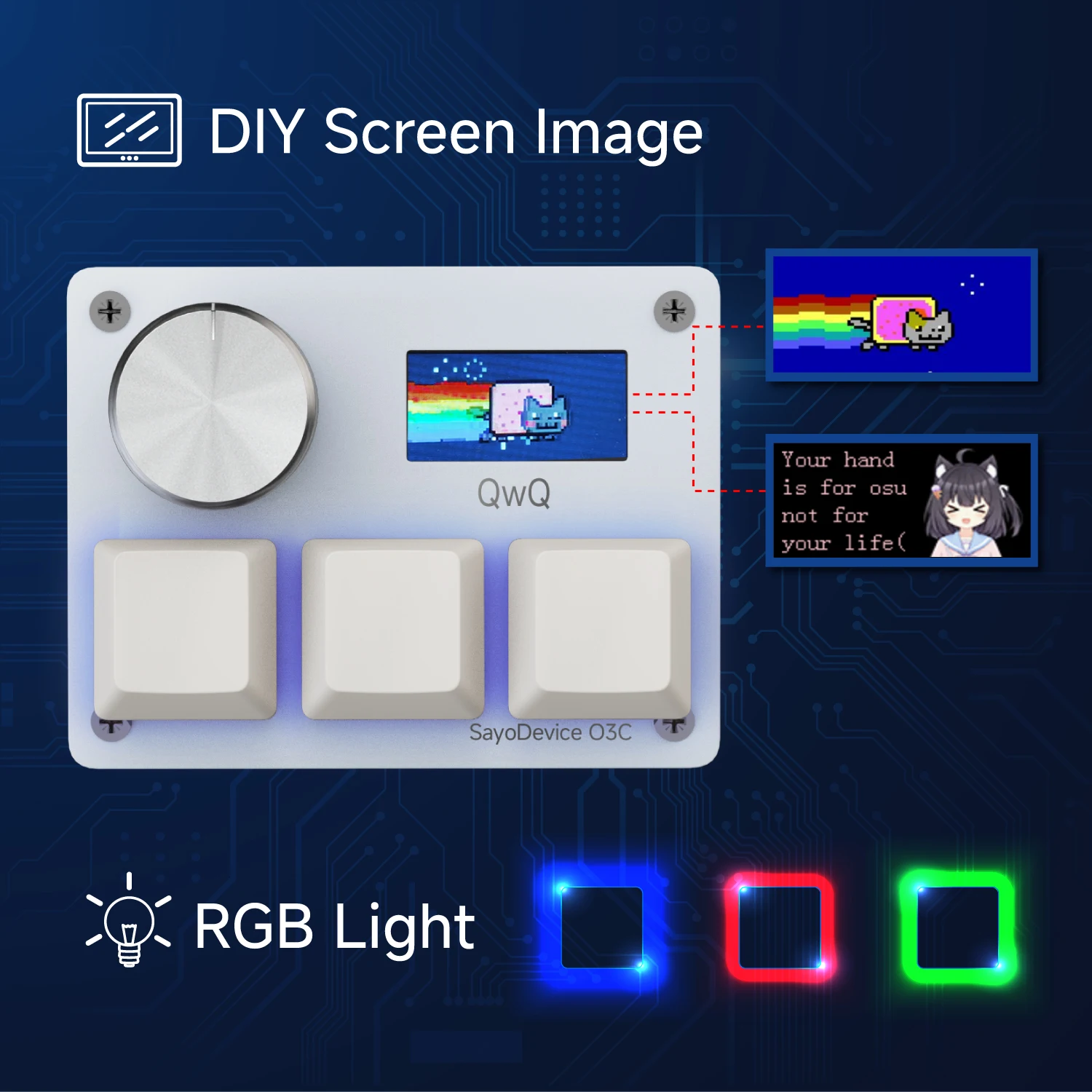 Sayodevice O3C Keyboard Rapid Trigger Hall Magnetic Switches For OSU Geometry Dash Rhythm Games DIY Keys Screen Image RGB Light
