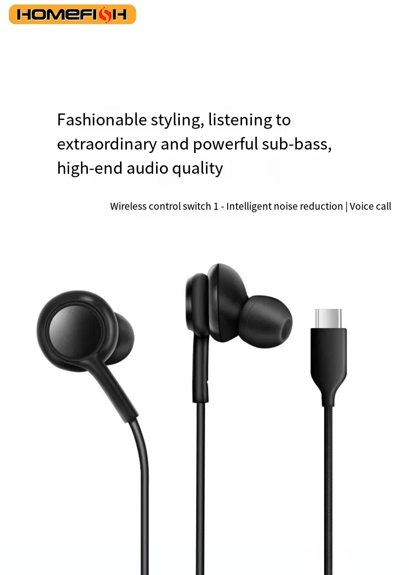 ALI shop - rezultati pretrage ... ... HOMEFISH USB-C Wired Earbuds In-Ear Headphones with Mic HiFi Stereo Sound Tangle-Free Braided Cable Type-c,3.5mm 2skus ::: 2021 ::: :::