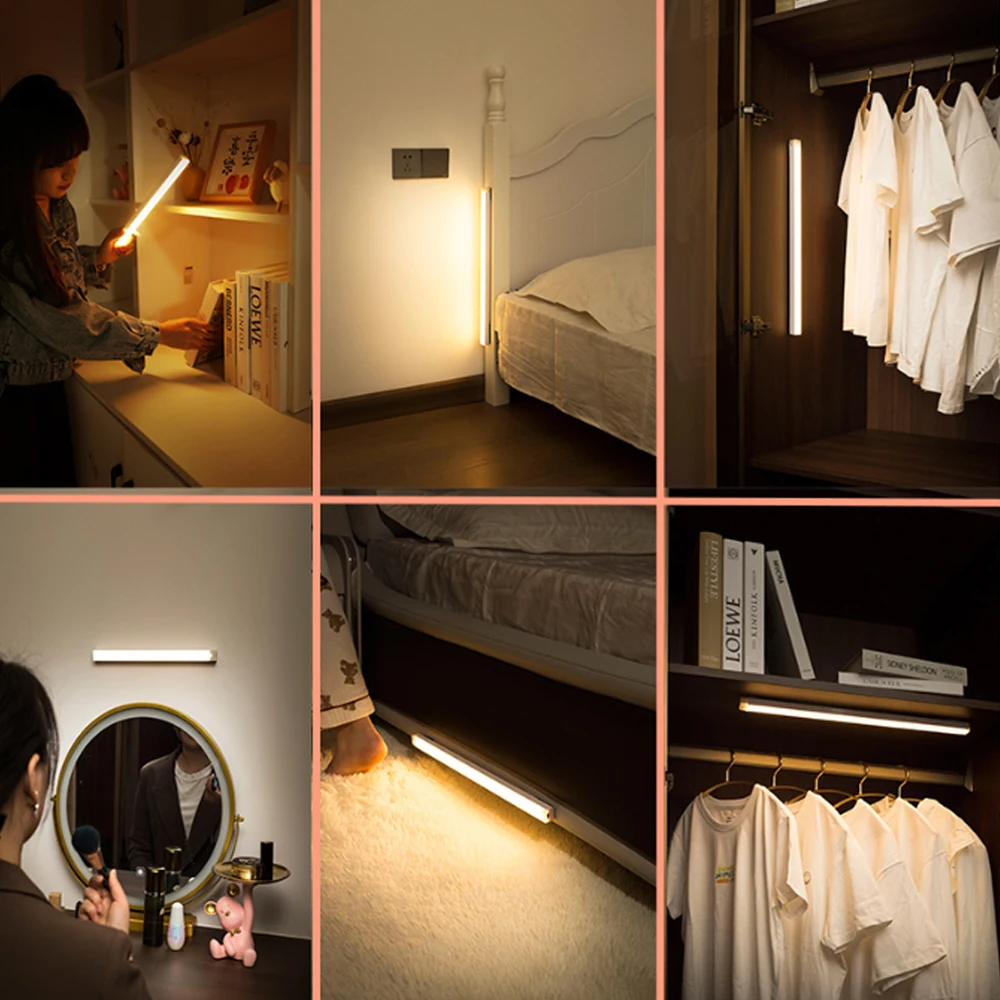 Motion Sensor Wireless LED Night Light USB Rechargeable Long Strip Bar Lamp for Kitchen Cabinet Aisle Tube Bedside Detector Bulb