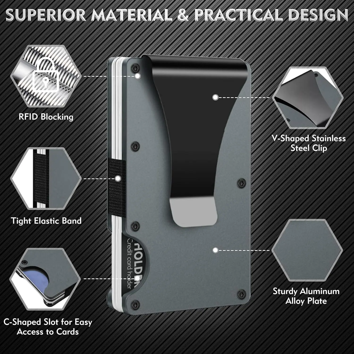Minimalist Wallet for Men & Women - Slim RFID Wallet, Scratch Resistant, Credit Card Holder & Money Clip, Easily Removable Money