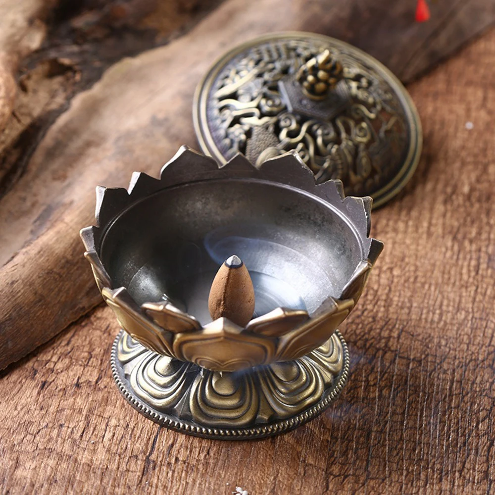 Lotus Flower Incense Burner Buddhism Buddha Holder Brass Mini Sandalwood Censer Incense Metal Craft Home Decoration