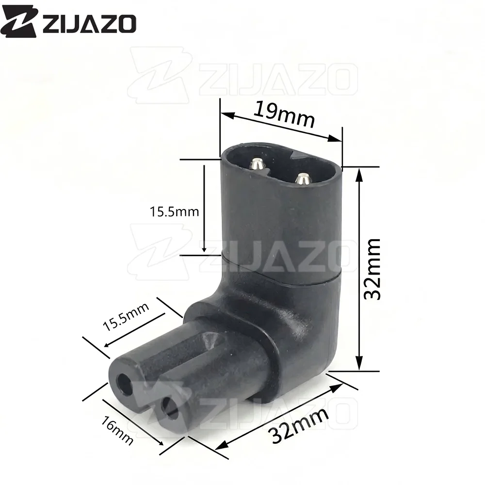 ZIJAZO 1Pc IEC 320 2-Pin C7 Female To C8 Male Right Angled AC Power Adapter Converter