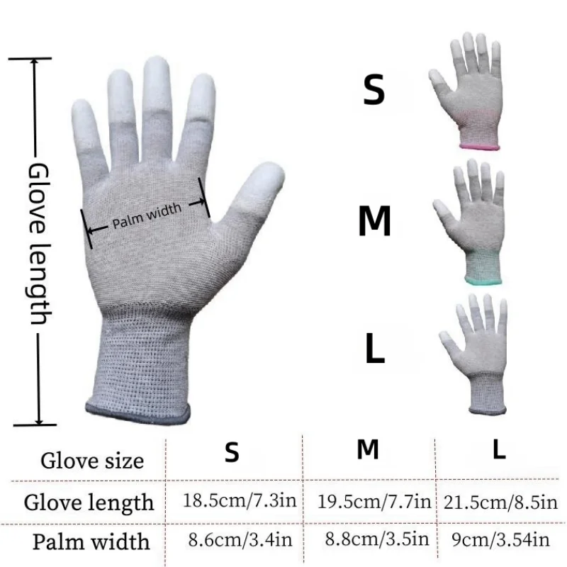 10 Pairs,ESD Safety Work Gloves with Coated Fingertips for Electronics Maintenance, High Quality,