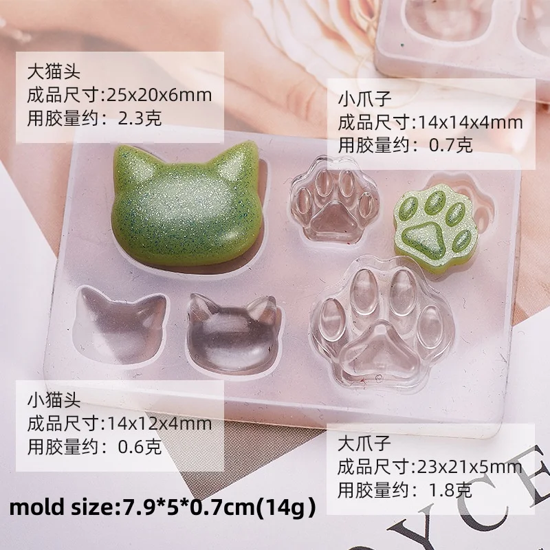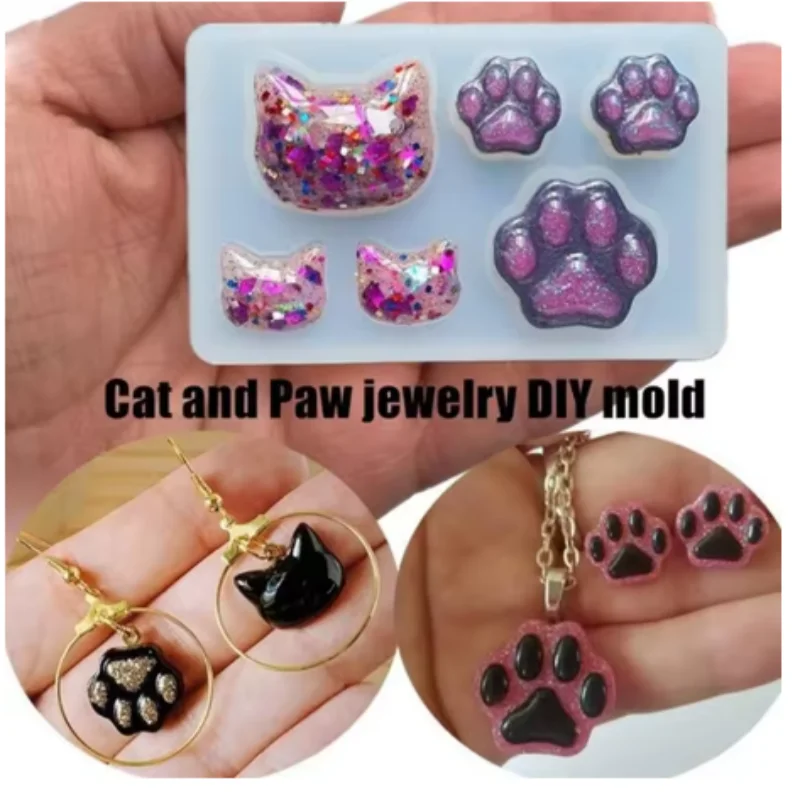 DIY Cat Paw Crystal Epoxy Resin Heart Silicone Molds Jewelry Making Epoxy Resin Silicone Casting Mould