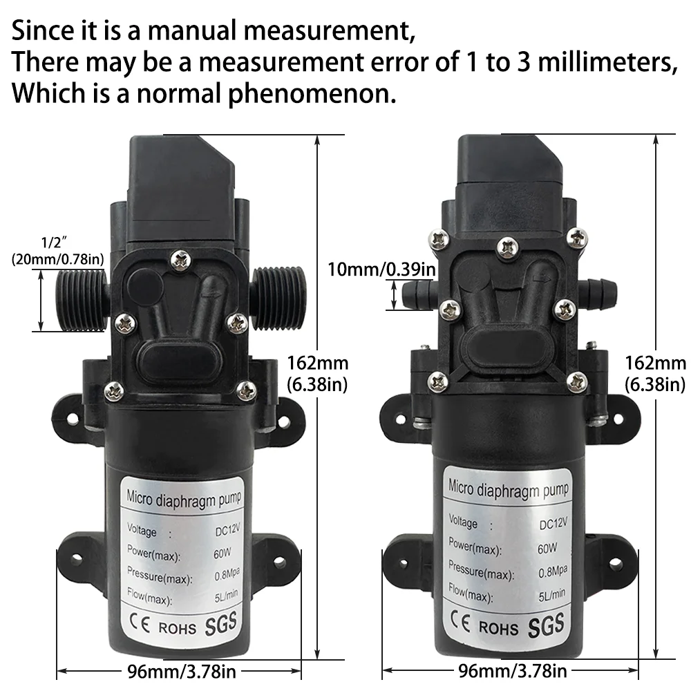 DC12V 120PSI 60W 5L/Min High Pressure Diaphragm Pump Mini Electric Self-priming Pump Water Washing Machine Pesticide Spraying