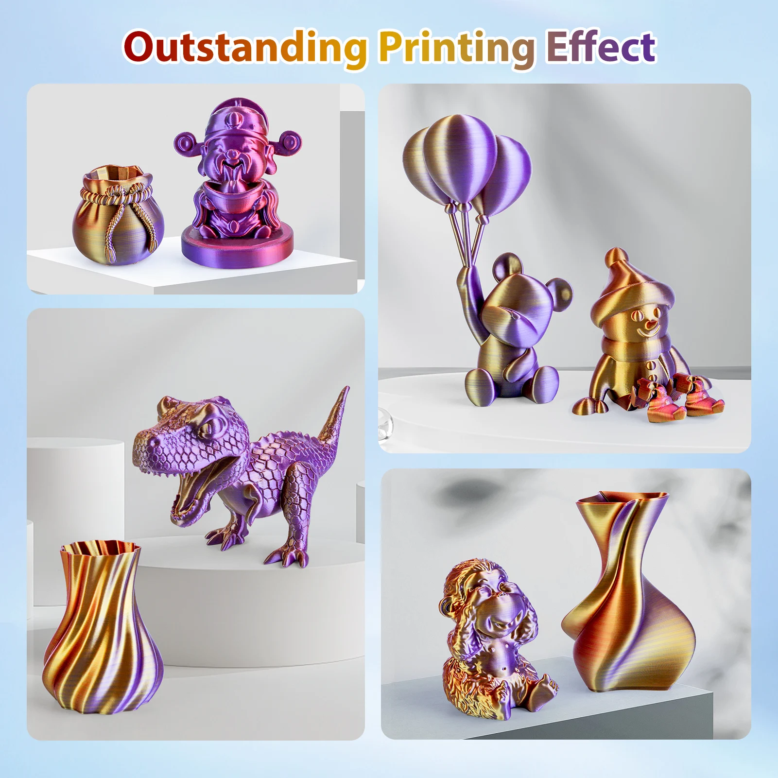 Tri-Color Silk PLA 3D Printer Filament 250g 1.75mm, 3color-in-1 Silk PLA Filament, Fit Most FDM Printers 3D Printing Filament