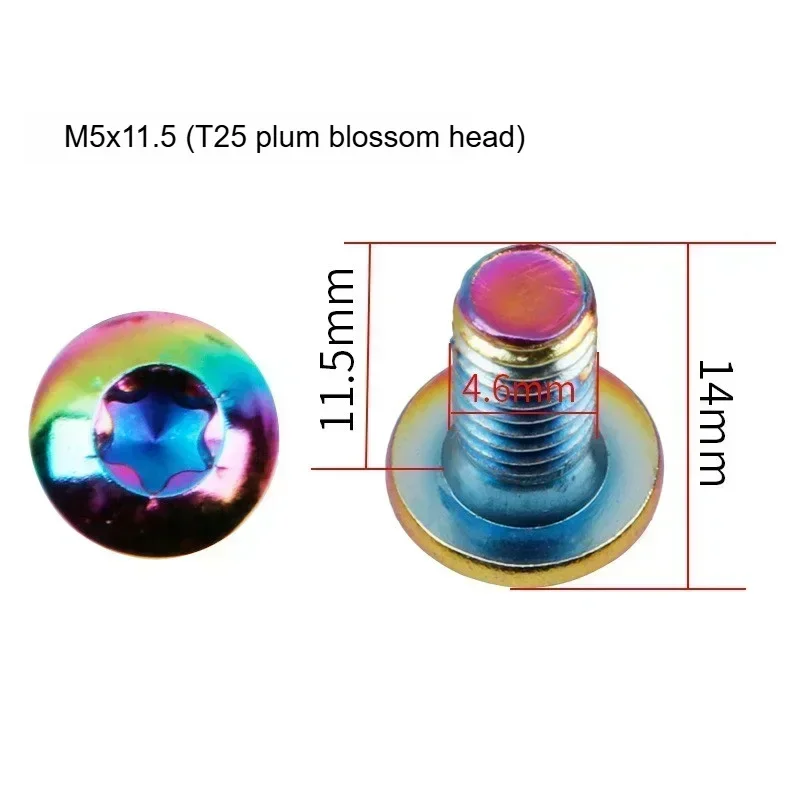 IIIPRO Bicycle Disc Brake Rotor T25 M5x11.5mm MTB Road Bike Fixing screws Steel Alloy 6-Bolt Plate Colorful Cycling accessories