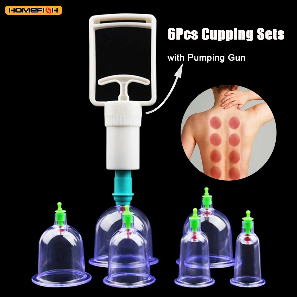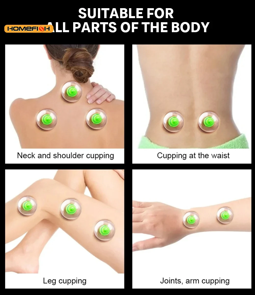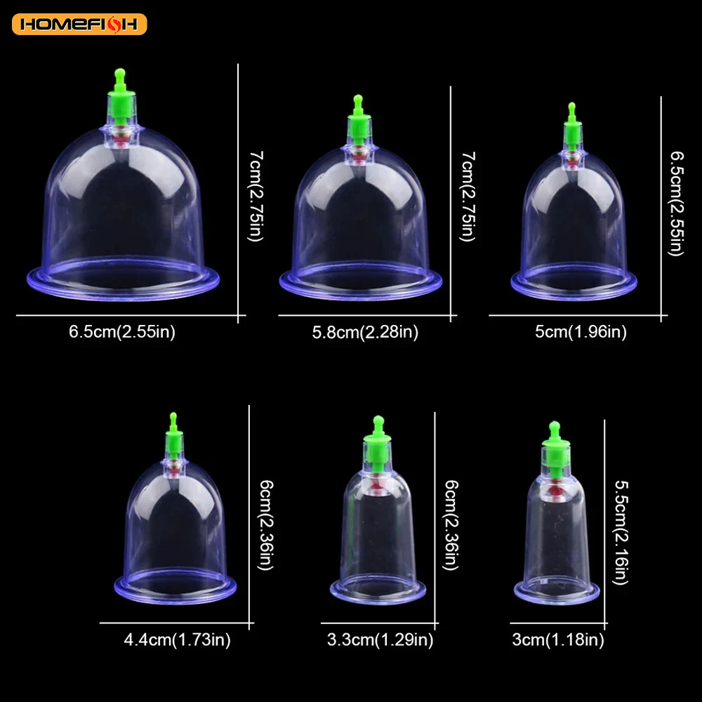 6 Suction Cups for Back-Vacuum Cupping Massage Kit w/ Pump Gun Body Massage Anti-Cellulite