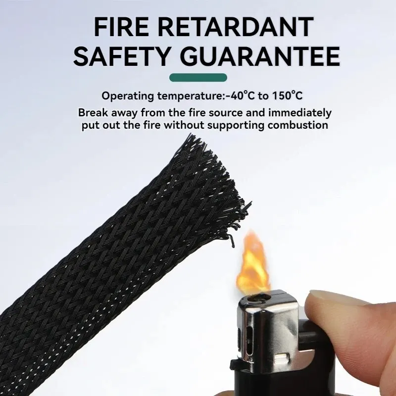 Black Nylon Wear-resistant Flame-retardant Fireproof Electric Cable Bundle Insulation Protection Braided Sleeve