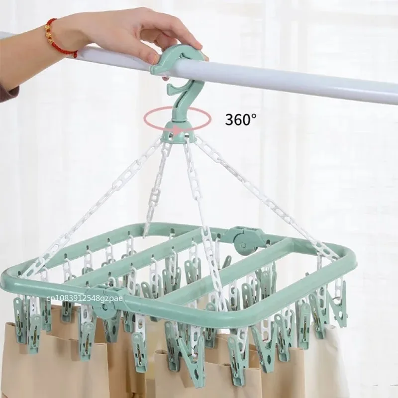 32 Clips Folding Clothes Dryer Hanger Windproof Socks Underwear Drying Rack Household Children s Storage Laundry Rack