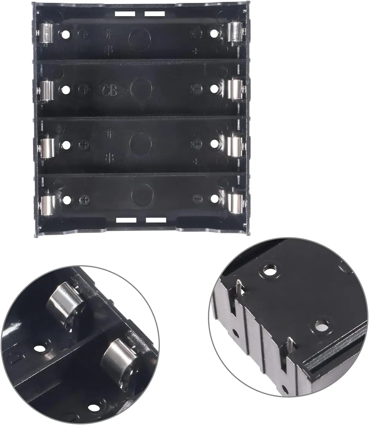 18650 Battery Case Holder,1 Pack 1/2/3/4 Slots x 3.7V DIY Battery Storage Box, in Parallel Black Plastic Batteries Case with Pin