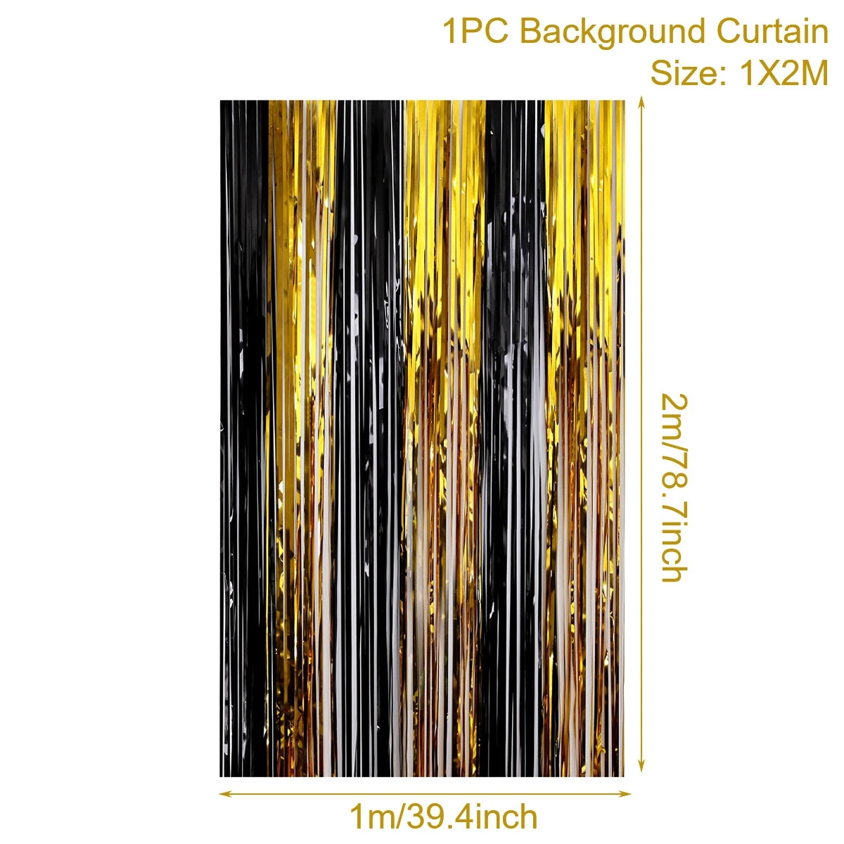 Birthday Party Decorations Backdrop Curtains Glitter Black Gold Tinsel Fringe Foil Curtain Background Wedding Anniversary