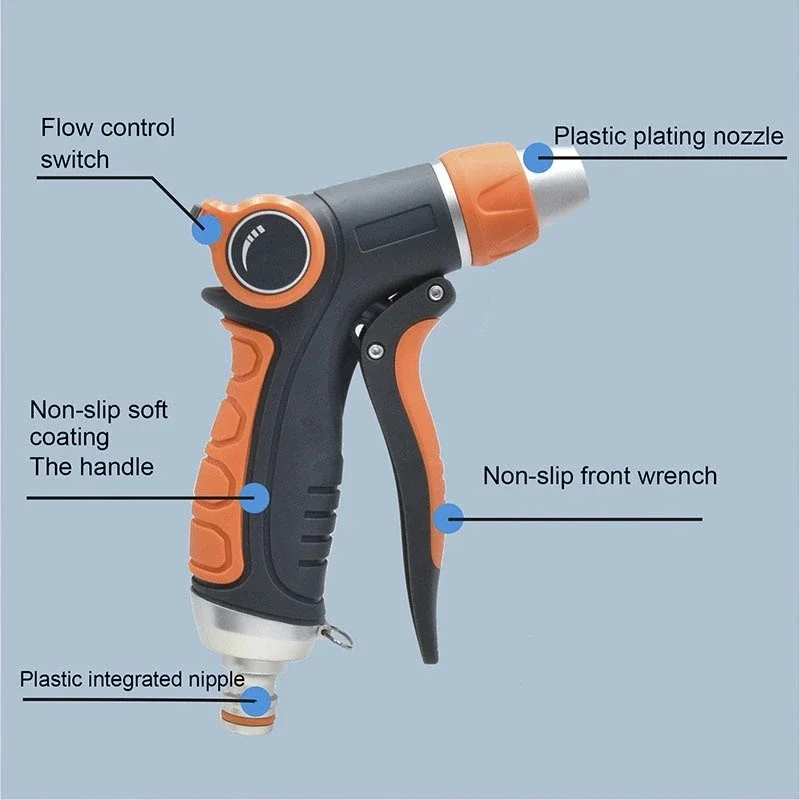 Hose Water Spray Gun Adjustable Car Wash Gun Garden Spray Portable High Pressure Gun Sprinkler Nozzle Garden Water Jet