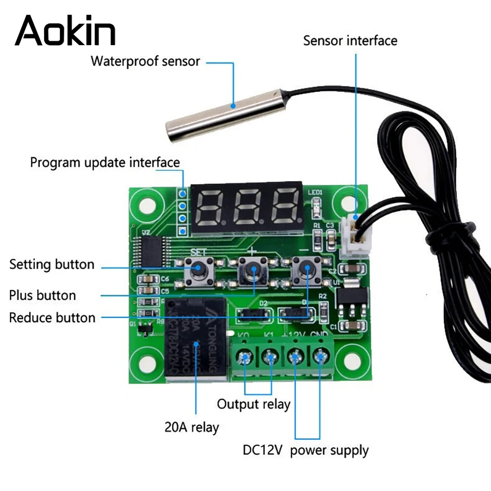 W1209 Thermometer with Waterproof probe 5V 12V for arduino, DIY electronic thermostat W1209 LED Digital DC temperature module