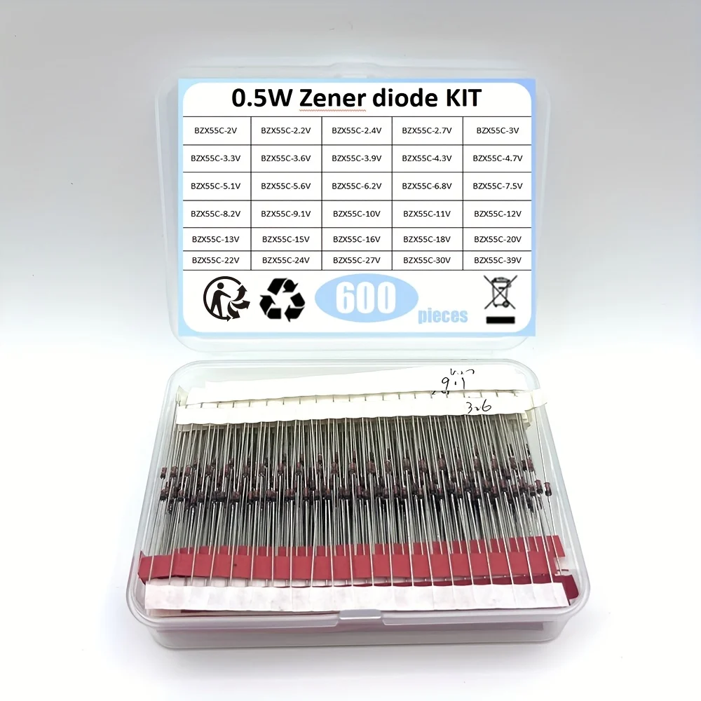 600PCS/LOT 1/2W 0.5W Zener Diode 2-39V 30Values*20Pcs Assorted Assortment Set New Electronic Diy Kit BOX