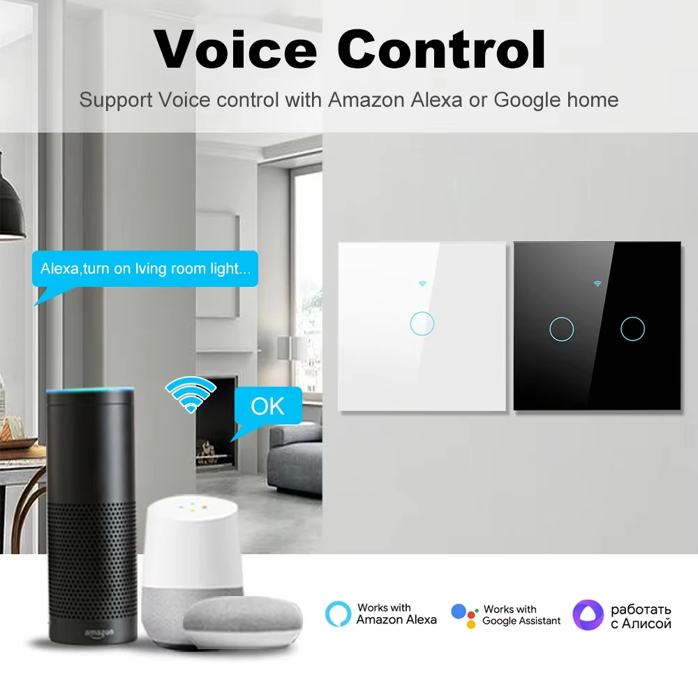 aliexpress , ali , shop , ali shop , online , prodavnica , online shop , online prodavnica , kupujem , prodajem , Smart Switch EU WiFi Smartlife Neutral Wire/No Neutral Wire Touch Light Switch 220V Works With Alexa Google Home 1/2/3/4 Gang