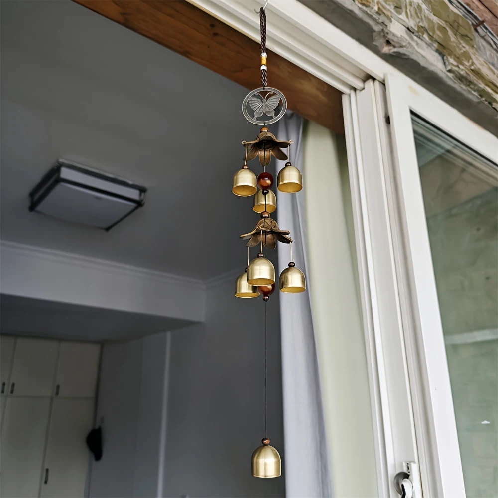 Double Metal Bell Pendant Wind Chime, Brass Color Bell Hanging Decoration, Suitable for Home Patio Wall Hanging, Gift for Friend