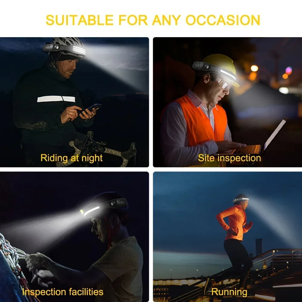 Multi-functional COB Headlamp Induction 6000K LED Bar Head Torch Work Light 5 Modes Rechargeable for Climbing Running Cycling