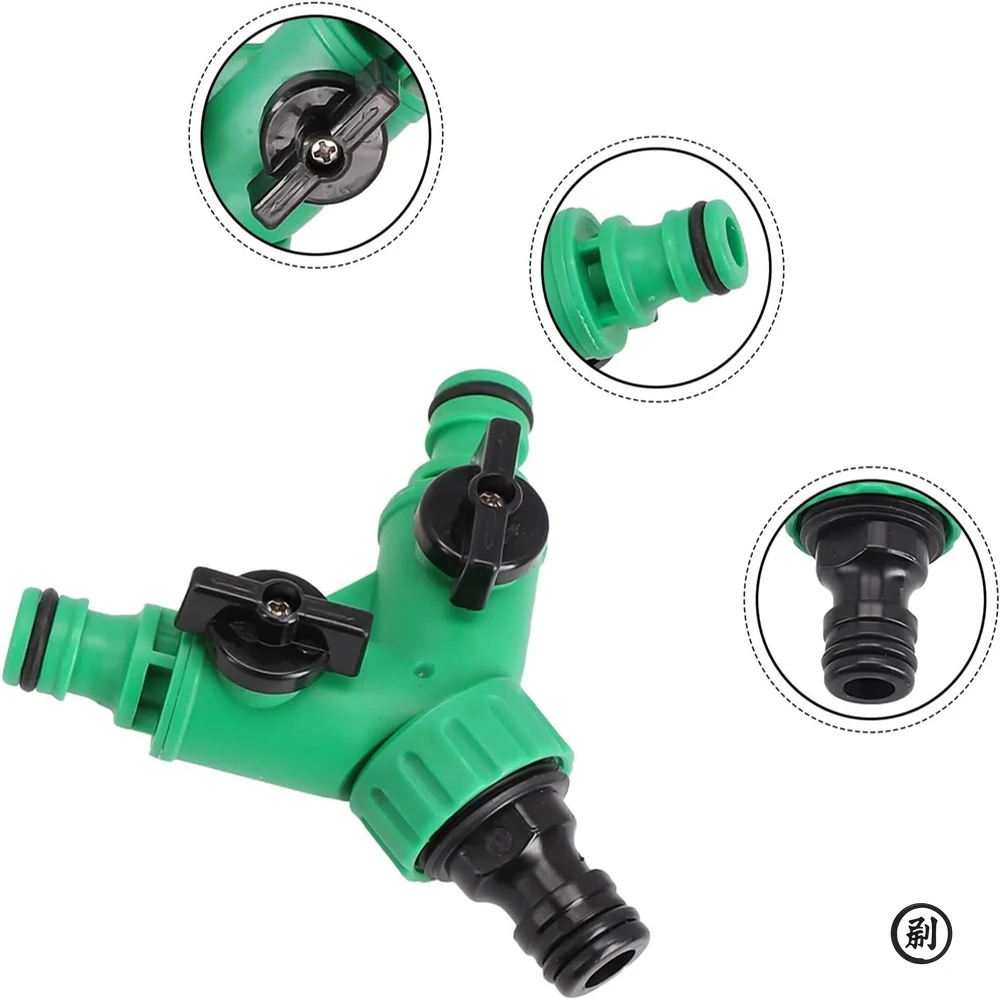 Garden Water Splitter Y Connector 2-Way Valvewith Switch for Faucet Irrigation Flower Planting Water Control Plastic Adapter