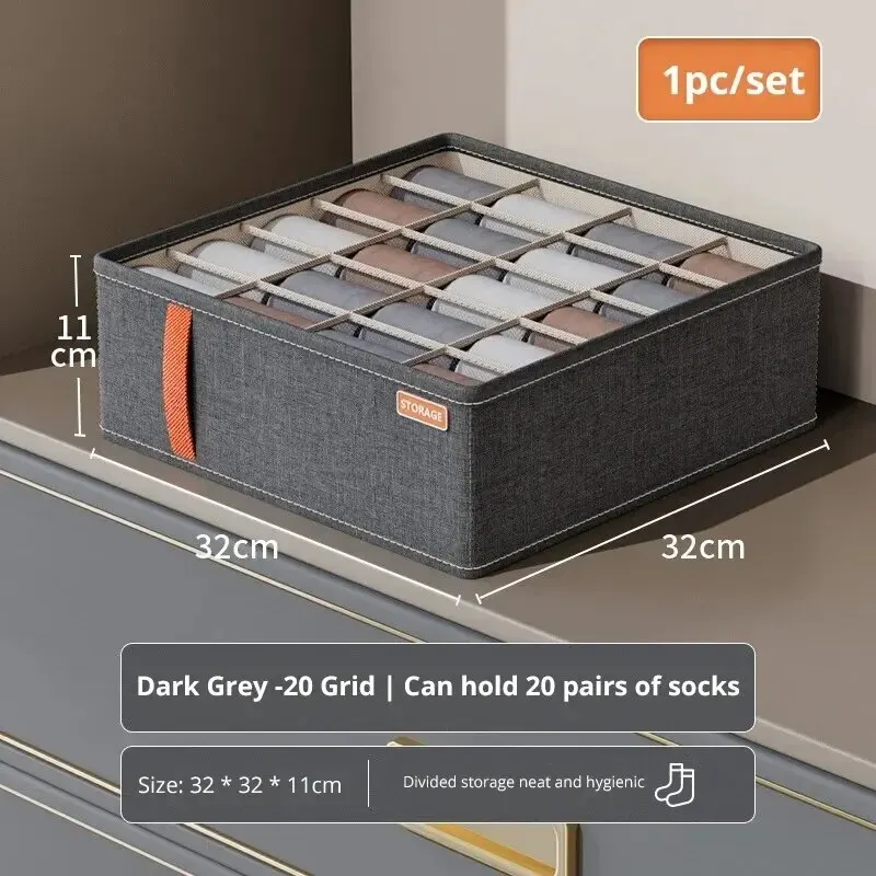 6-20 cell Underwear Storage Box Dark Grey Socks Bra organizer Drawer Division Multifunctional Household Wardrobe Classification