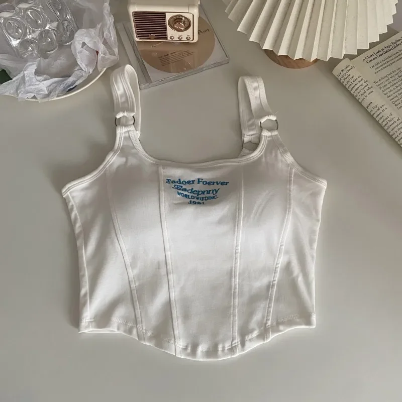 1pc Letter Print Cotton Women Small Breast Bras Hot Girls Wear Casual Slim Underwear Padded Camisole Top