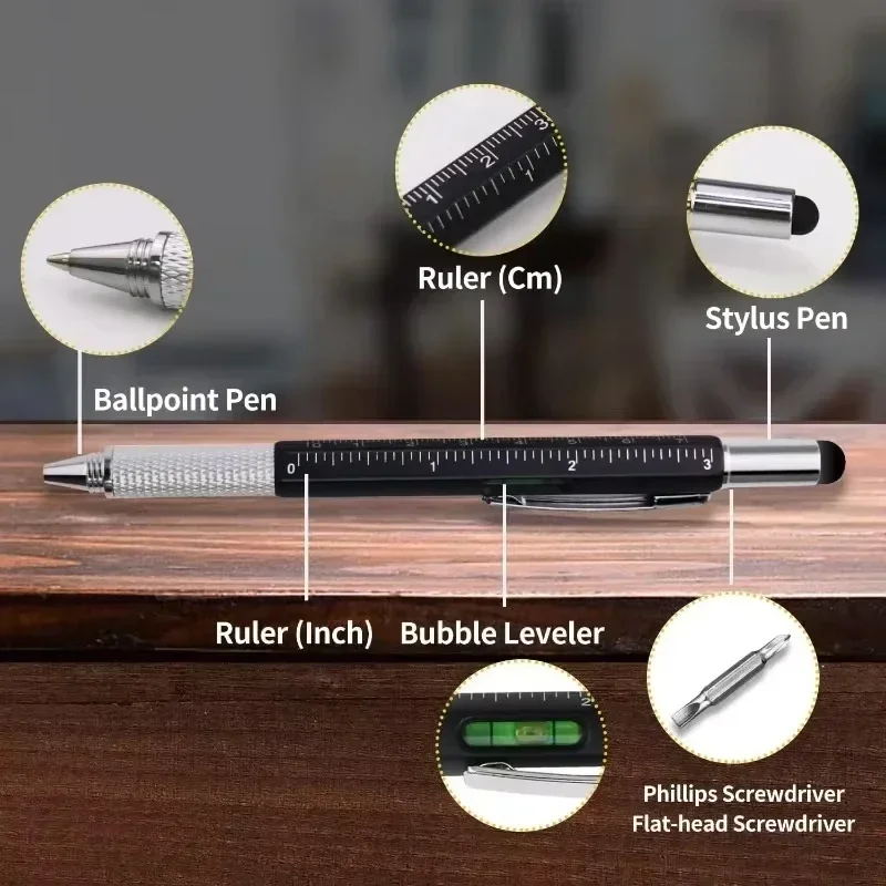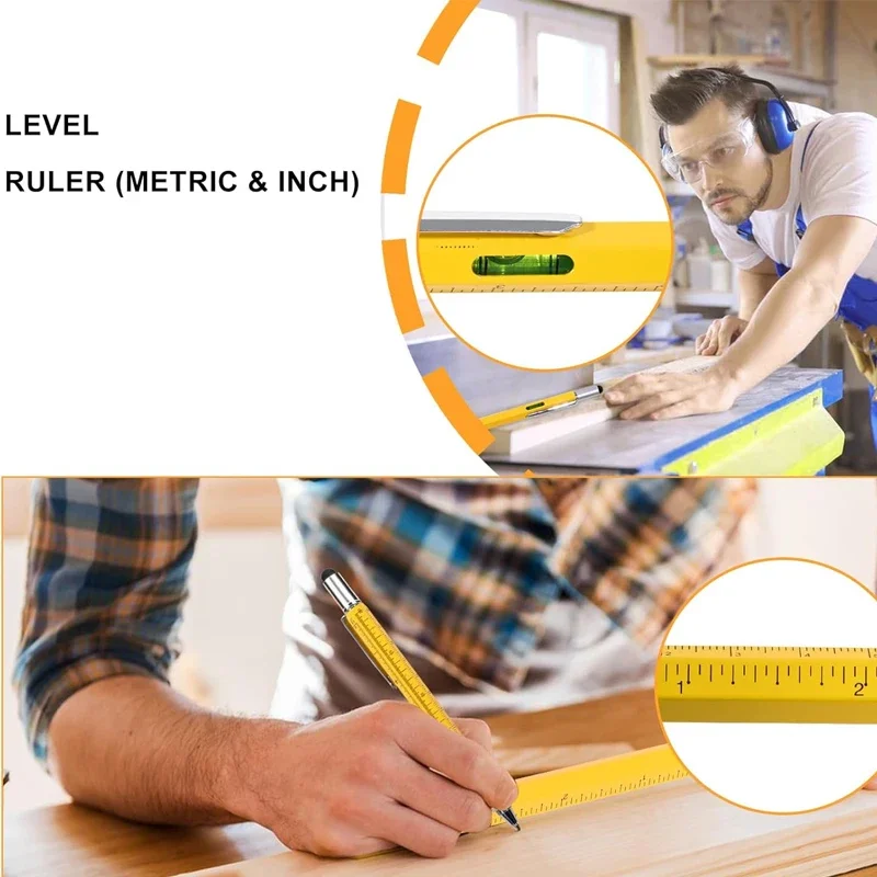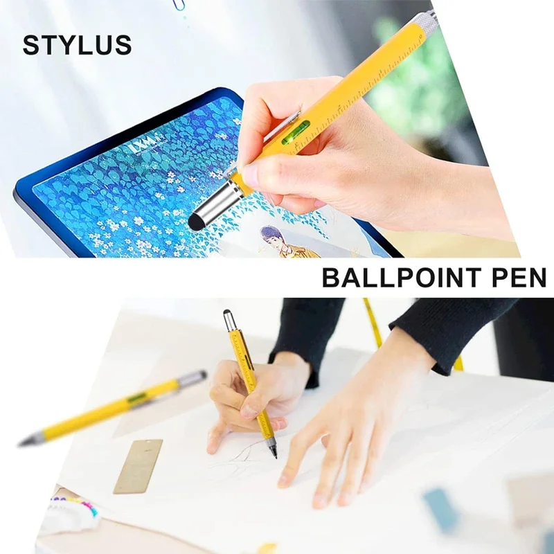 7 in1 Multifunction Ballpoint Pen with Modern Handheld Tool Measure Technical Ruler Screwdriver Touch Screen Stylus Spirit Level