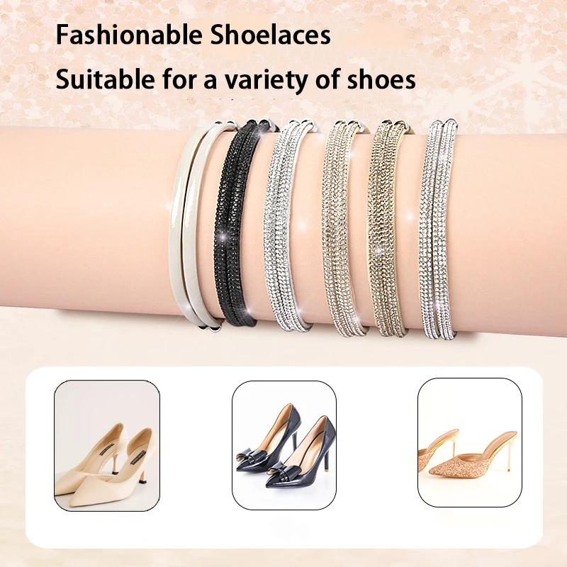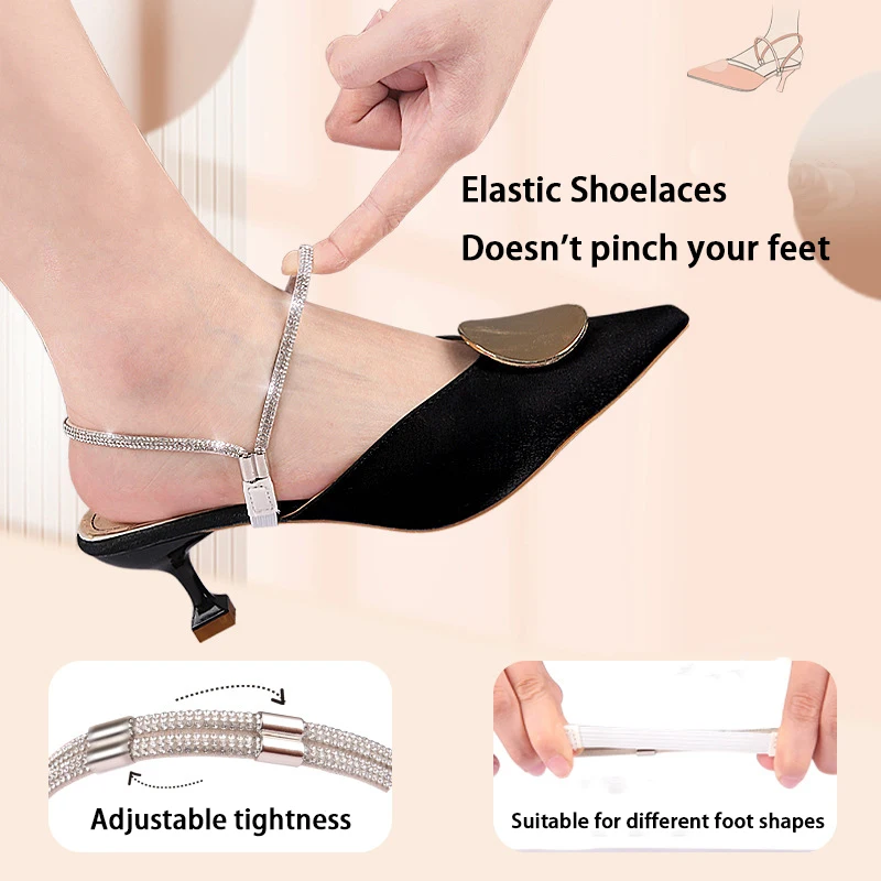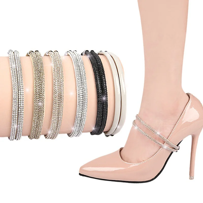 Women's High-Heel Fixed ankle shoelace Sandal Anti-Slip Heel Straps Fashion Rhinestone Elastic Shoelaces shoe accessories