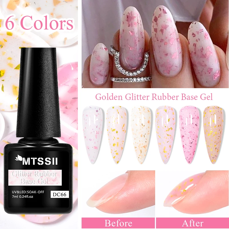 MTSSII 7ml Gold Foil Glitter Rubber Base Gel Self-leveling Semi Permanent Soak Off UV LED Gel Varnish For Nails Manicure