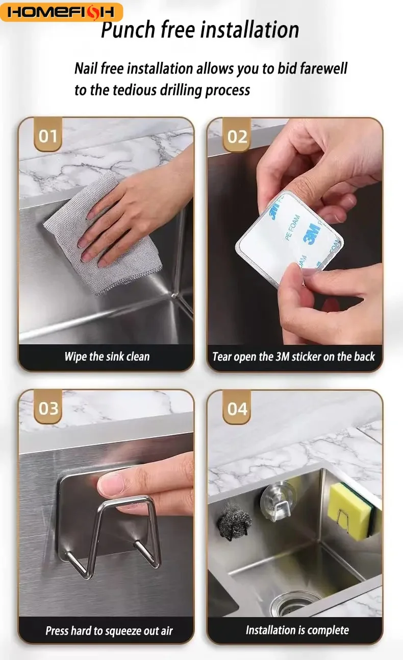 1pc Stainless Steel Sink Sponge Rack For Sponge Steel Wire Ball Draining Paste The Inner Wall Of The Sink Kitchen Supplies