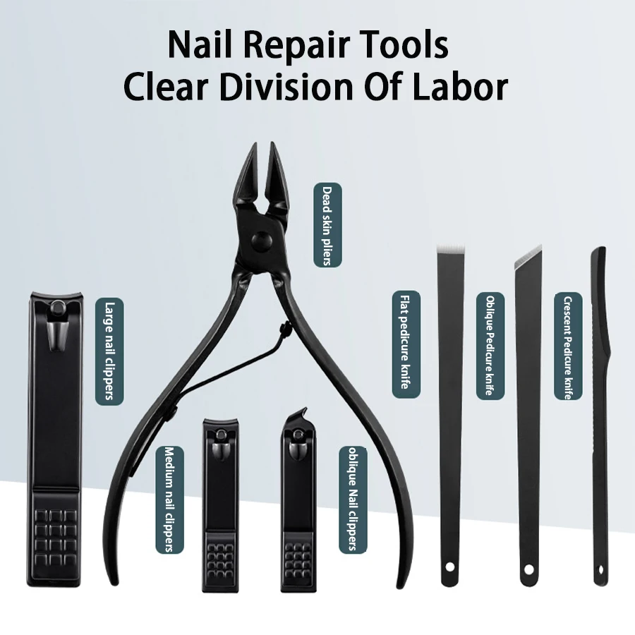 7/12/18/20/24PCS Set Professional Manicure Set Kits Stainless Steel Fingernail Toenail Clippers Set with Leather Portable Case