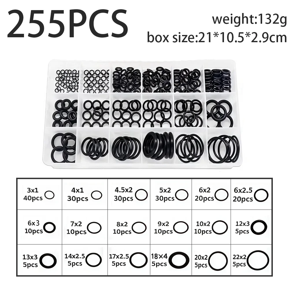 255pcs Rubber O Rings Kit, 18 Size Metric NBR Washer Gasket Sealing Assortment Kit, for Plumbing Faucet, Automotive, Air Or Gas