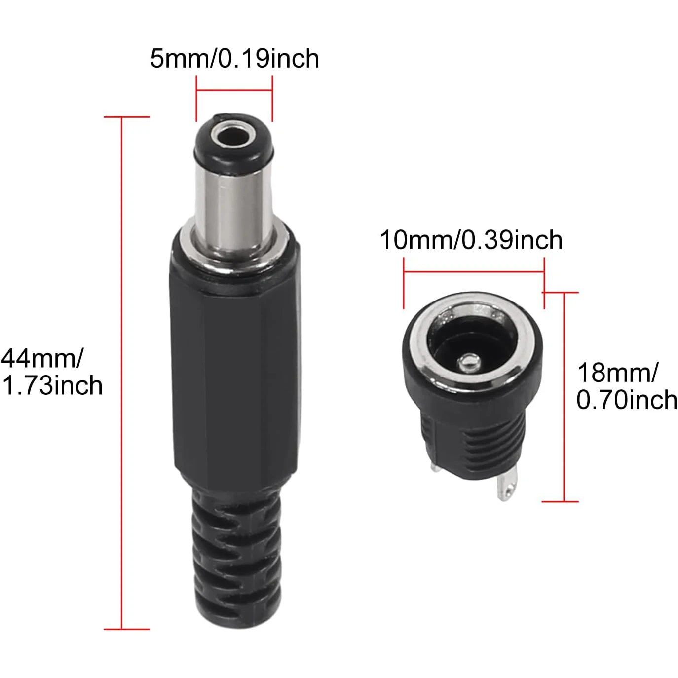5Pairs 5.5x2.1mm DC Power Supply Male Plug + Female Jack Panel Mount Solder Wire Connector 5.5 * 2.1mm DC Plug Socket Connector